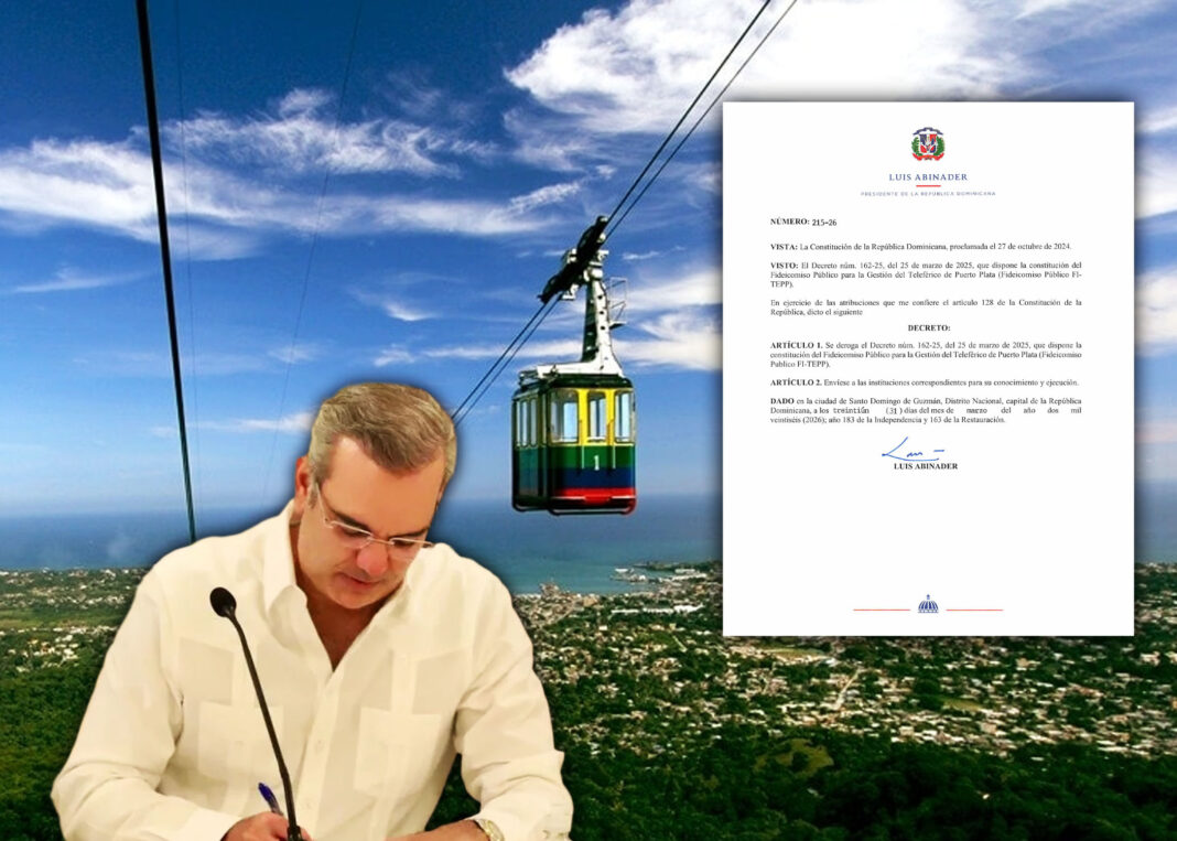 El presidente Luis Abinader derogó anoche el Fideicomiso Público para la Gestión del Teleférico de Puerto Plata (FI-TEPP).